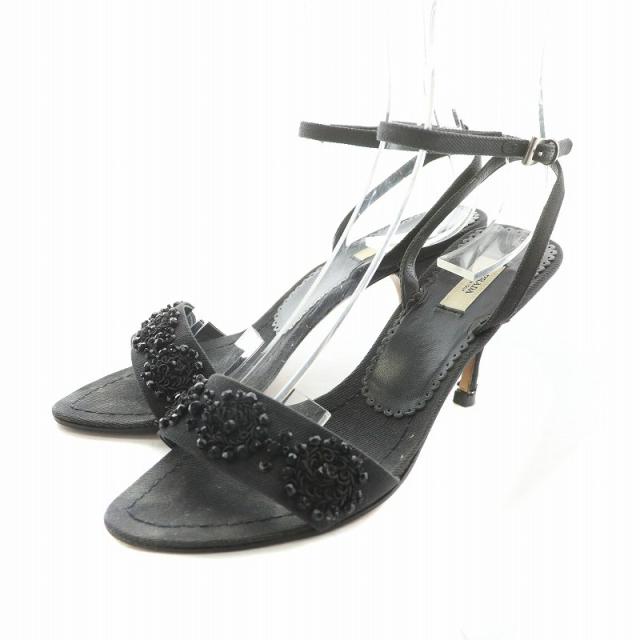【中古】プラダ PRADA デニムサンダル ビーズ ピンヒール ストラップ オープントゥ 35.5 22.5cm ブラック /NQ