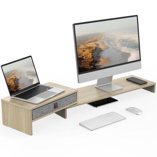 FENGE モニター台 机上台 パソコン台 モニタースタンド 横幅78.3-113CM 木製天板 PC台卓上 机上ラック PCモニター台 パソコンラック 卓上 引き出し収納オークG04D1083C