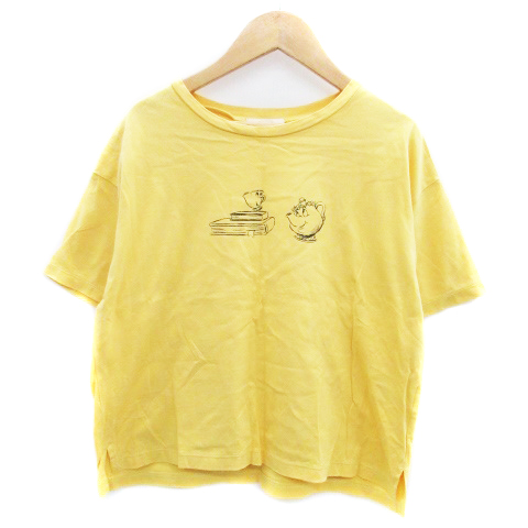 【中古】エージーバイアクアガール × ディズニー Tシャツ カットソー 半袖 ショート丈 プリント 美女と野獣 黄色 黒