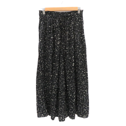 【中古】グローバルワーク ガウチョパンツ ワイドパンツ イージーパンツ 七分丈 総柄 M 黒 ブラック レディース