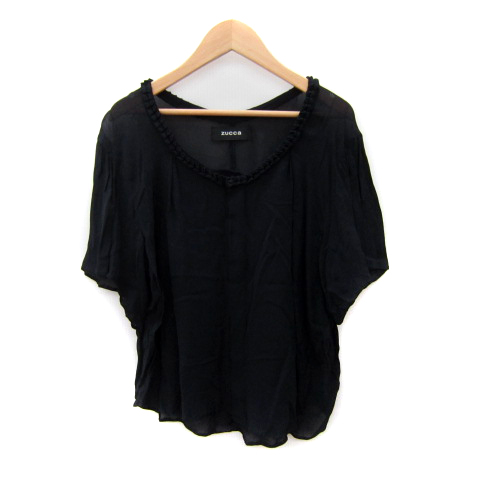 【中古】ズッカ zucca ブラウス シャツ 半袖 ラウンドネック シースルー 無地 M 紺 ネイビー /SY25 レディース