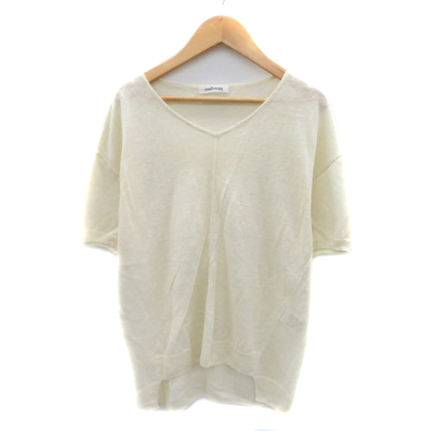 【中古】ニューヨーカー NEWYORKER ニット カットソー 半袖 Vネック 透け感 麻 リネン L アイボリー レディース