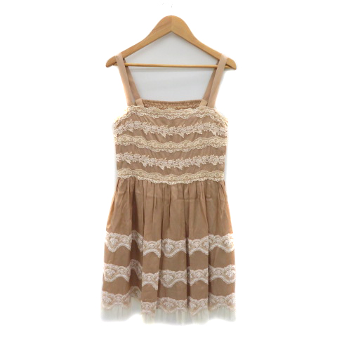 【中古】シンシアローリー CYNTHIA ROWLEY キャミソールワンピース ミニ丈 レース シルク混 2 ベージュ レディース