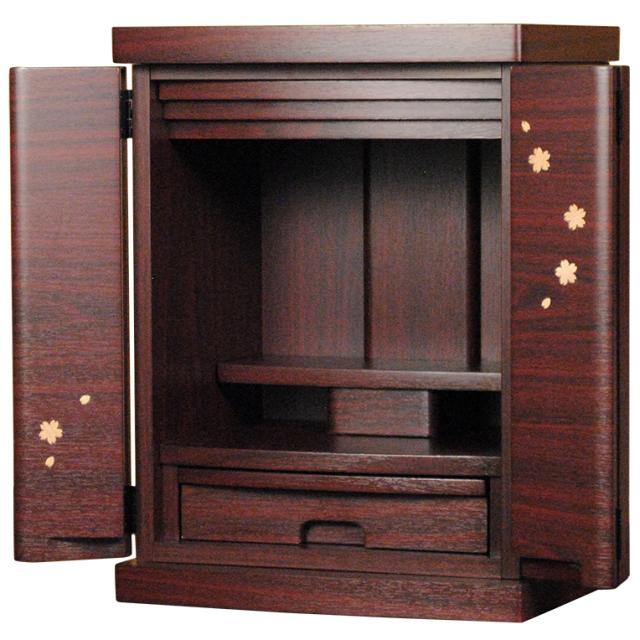 ミニモダン仏壇【桜都(おと)桜柄木象嵌 15号紫檀色】 小型仏壇 家具調仏壇 送料無料