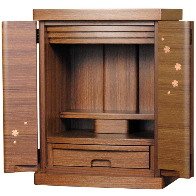 ミニモダン仏壇【桜都(おと)桜柄木象嵌 15号ウォルナット色】 小型仏壇 家具調仏壇 送料無料