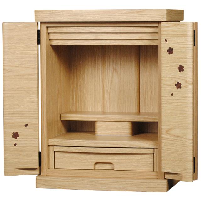 ミニモダン仏壇【桜都(おと)桜柄木象嵌 15号 オーク色】 小型仏壇 家具調仏壇 送料無料