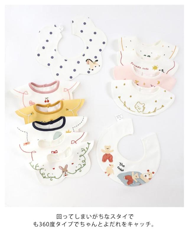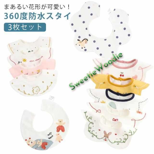 スタイ 防水 360 度 3枚セット よだれかけ よだれカバー 綿 コットン おしゃれ 可愛い 男の子 女の子 フリル 刺? 前掛けまるいスタイ くるくるスタイ ベビー 赤ちゃん キッズ 子供 ビブ ナチュラル 前掛け スナップボタン