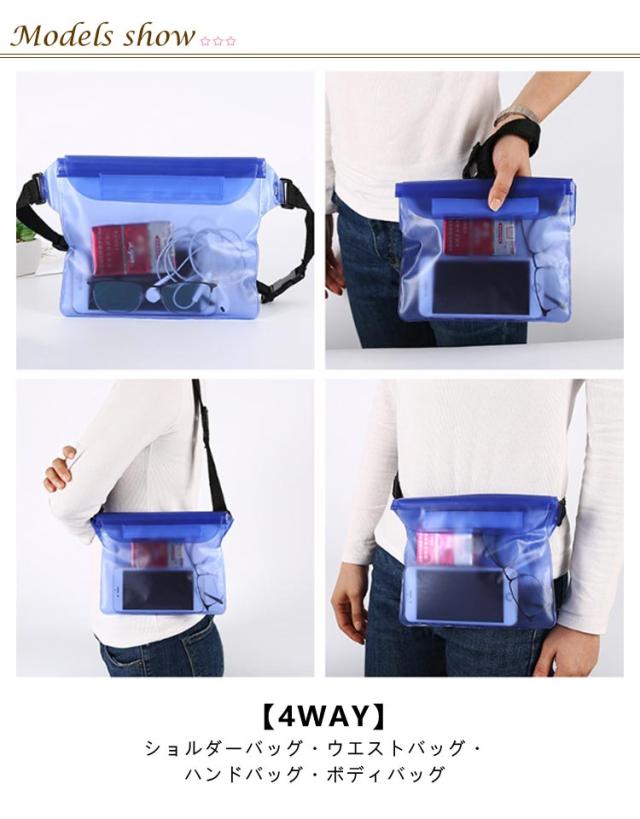 | 2個セット 4way 防水ポーチ 【4WAY】ショルダーバッグ・ウエストバッグ・ハンドバッグ・ボディバッグ 大容量!スマホや財布を収納できる 入れたままスマホ操作ができる 防水等級はIPX8、上下左右からの水を防ぐ | |