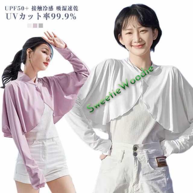 可愛い ケープ 立ち襟 レディース 冷感 ショート丈 UPF50+ 着る 長袖 UV パーカー ラッシュガード ポンチョ ライトアウター ボタン ゆったり 日よけ カーディガン アームカバー UVカット 立ち襟 ボレロ トップス 体型カバー 指穴 吸汗 速乾