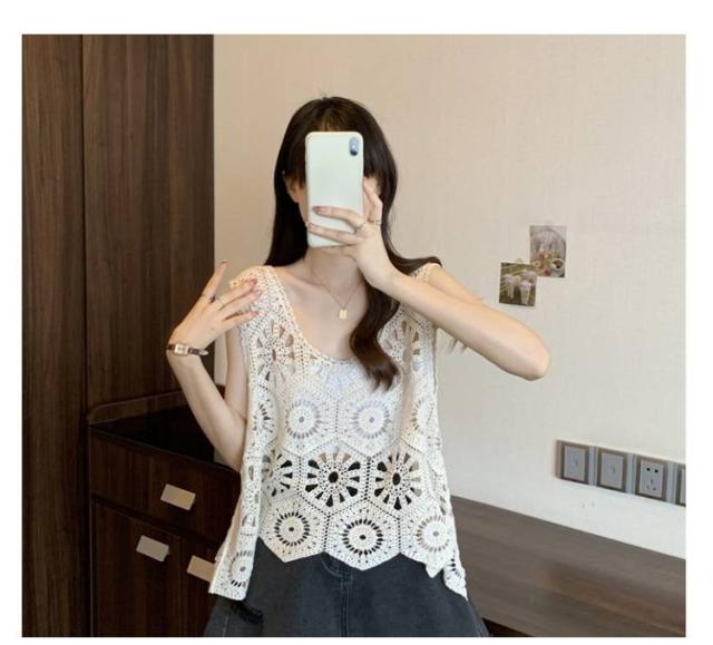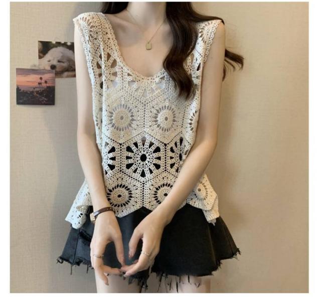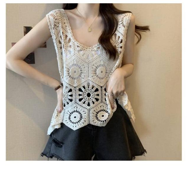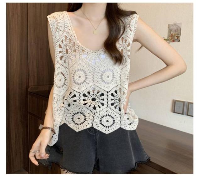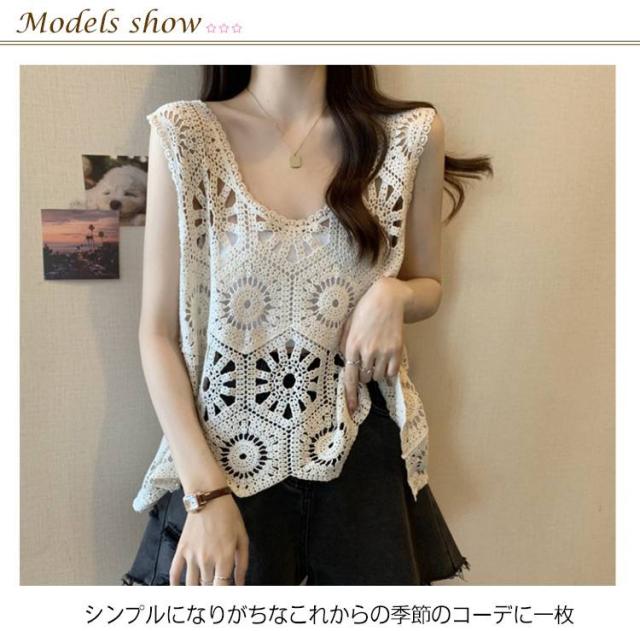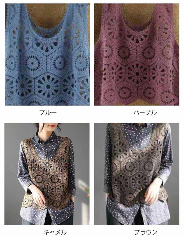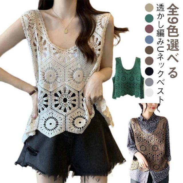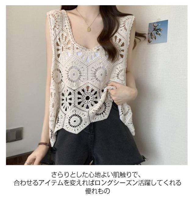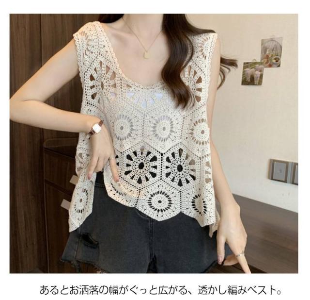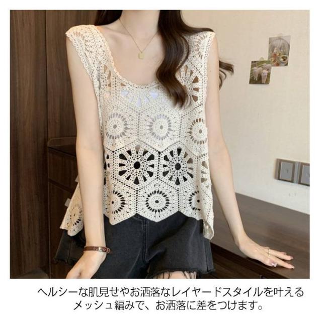 プルオーバー レディース カジュアル 夏 クロシェ編み トップス レイヤード ベスト 透かし編み かぎ編み 春 無地 カジュアル ニットベスト トップス きれいめ ベスト フェミニン 無地 大人かわいい 透け