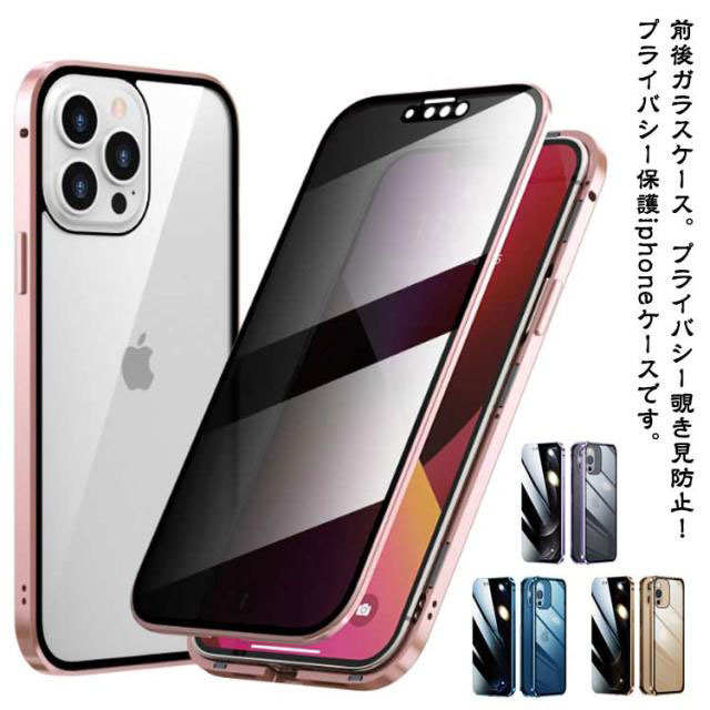| 前後ガラスケース。プライバシー覗き見防止!プライバシー保護iphoneケースです。 透明な背面はガラスのプレートを使用し、iPhoneの自然な外観を維持するデザインになっています。 指紋を防ぐ、強化ガラスで画面を全面保護! わずか一秒で装着どこからでも着脱可能! 落下防止、耐衝撃・傷から守る。 iphone ケースは高品質の合金製フレームを使用、カバーを軽量化・しっかり保護。 | |