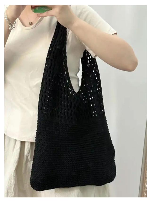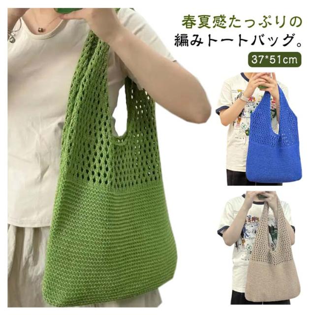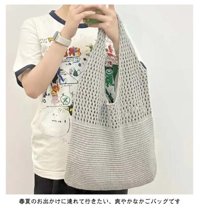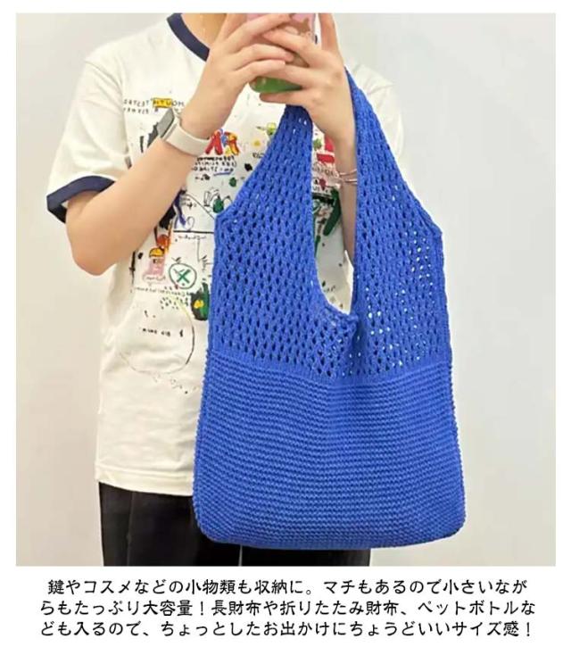 | 春夏感たっぷりの編みトートバッグ。 ざっくりと編まれたペーパー素材を使用しており、素材感でナチュラルな風合いを醸し出してくれます。 鍵やコスメなどの小物類も収納に。マチもあるので小さいながらもたっぷり大容量!長財布や折りたたみ財布、ペットボトルなども入るので、ちょっとしたお出かけにちょうどいいサイズ感! 春夏のお出かけに連れて行きたい、爽やかなかごバッグです | |