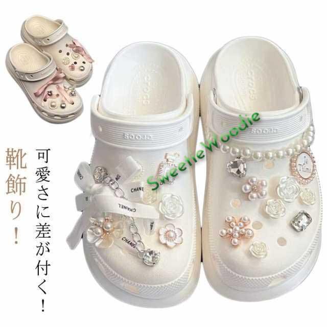 シューパーツ 12点/17点/20点セット サンダル用 靴飾り シューアクセサリー シューズアクセサリー レディース 女性 パール調 蝶 蝶々 花 フラワー チェーン おしゃれ かわいい シューチャーム デコレーション ジビッツ キッズ 女の子 DIY シューズチャーム サンダルボタン