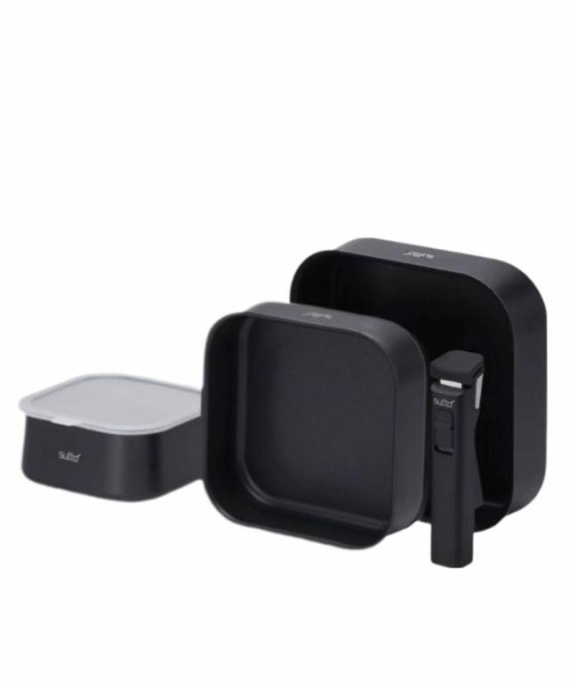 sutto(スット) IH対応 選べるフライパン 5点セット四角いフライパン 着脱ハンドルフライパン ブラック 深型フライパンS/フライパンM/フライパンL/専用取手/プラスチック蓋 商品の特徴:「着脱ハンドル」、「自立する」、「ハンドル収納」、「省スペース収納」、「冷蔵庫に保存可能」、「注ぎやすい」、「深型で焼き面積が広いから調理しやすい」