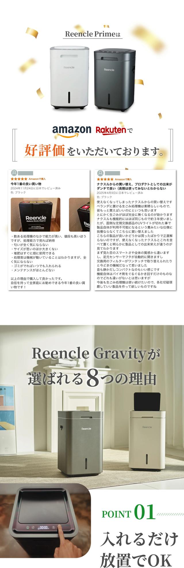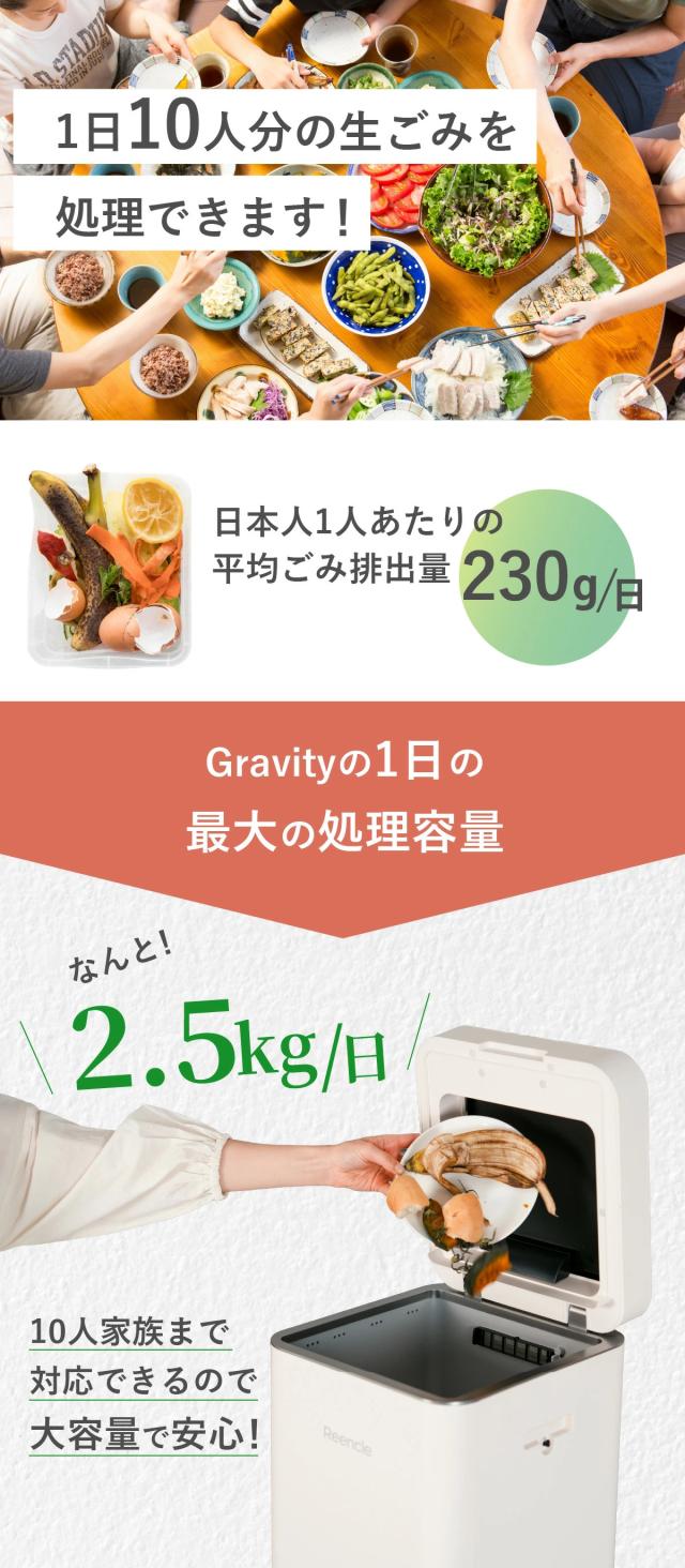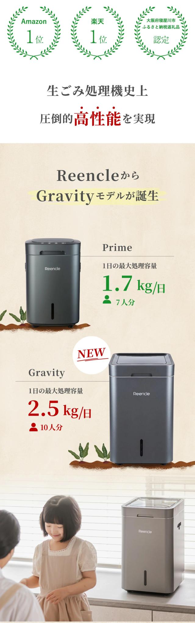 Reencle Gravity 生ごみ処理機 ハイブリッド式 家庭用 リンクル グラヴィティ バイオ式×乾燥式 Reencle Prime シリーズ 新モデル