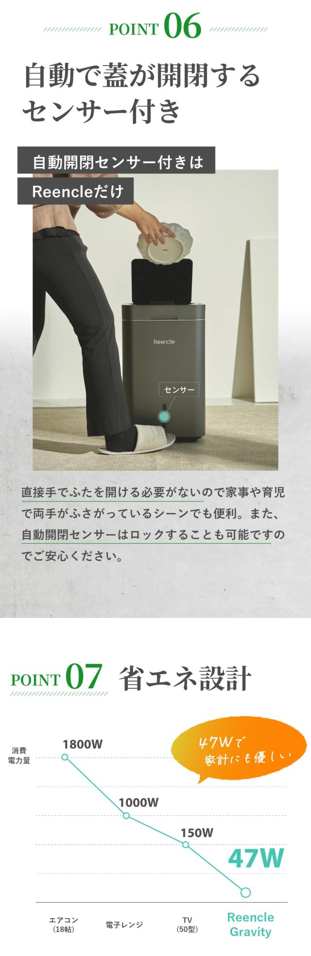 生ゴミ 処理機 助成金対象 強力脱臭 消音 蓋 自動開閉 堆肥 ゴミ箱 消臭 食べ残し ペットのうんち フン 糞 排泄物 臭い 肥料 静音 コンポスト SDGS 魔法のゴミ箱 おしゃれ Reencle Gravity 生ごみ処理機 ハイブリッド式 家庭用 リンクル グラヴィティ バイオ式×乾燥式 Reencle Prime シリーズ 新モデル