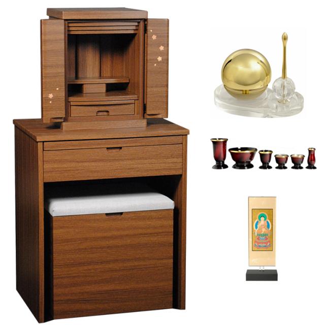 仏具付き「仏壇+仏壇台」・【桜都15号+ブルーム ウォルナット色】 小型仏壇 家具調仏壇 送料無料