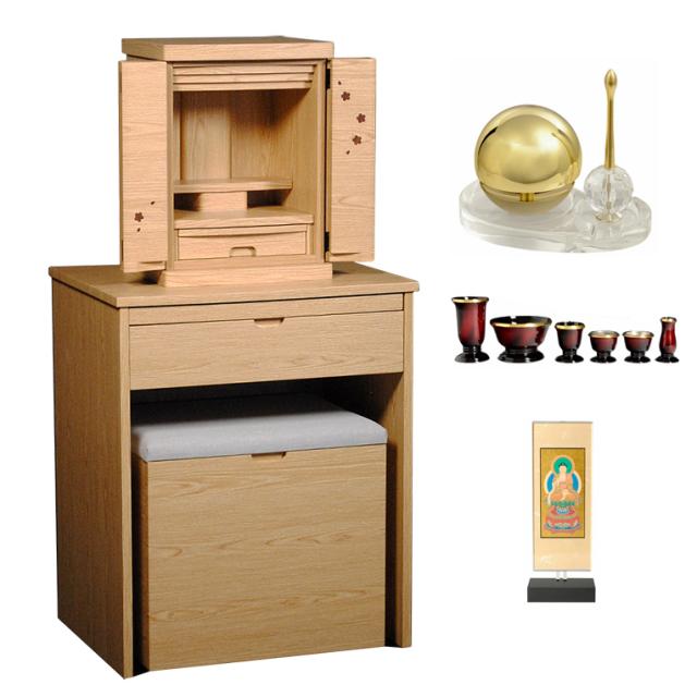 仏具付き「仏壇+仏壇台」・【桜都15号+ブルーム オーク色】 小型仏壇 家具調仏壇 送料無料