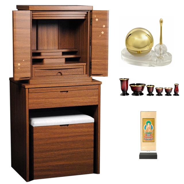 仏具付き「仏壇+仏壇台」・【桜都19号ワイド+ブルーム ウォルナット色】 小型仏壇 家具調仏壇 送料無料