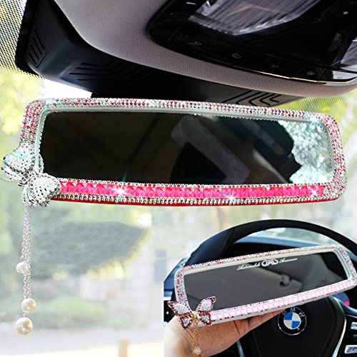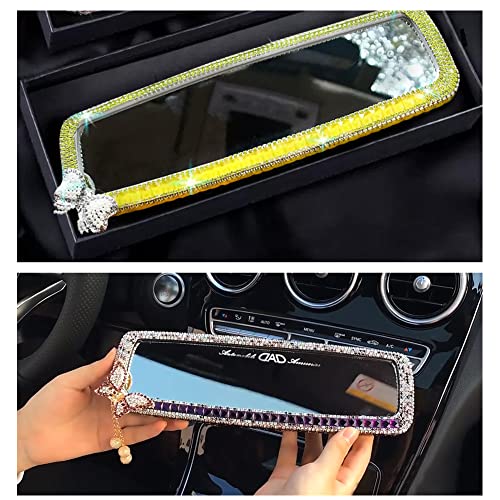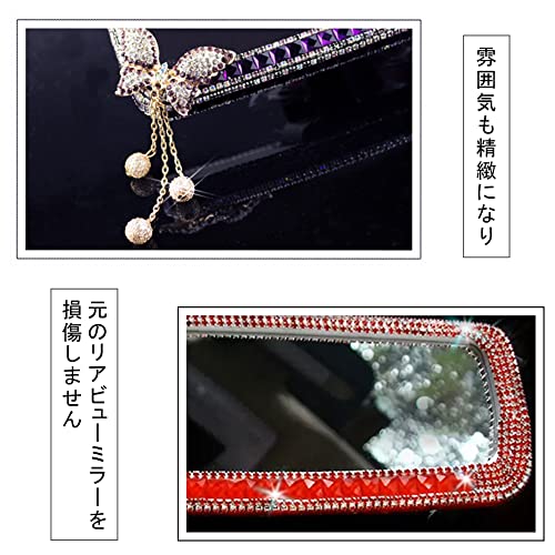 バックミラー キラキラタイプ 車 ルームミラー ミラー リヤビューミラー 人工ダイヤモンド デコレーション 車内アクセサリー (ライトパープルダイヤモンド 蝶)