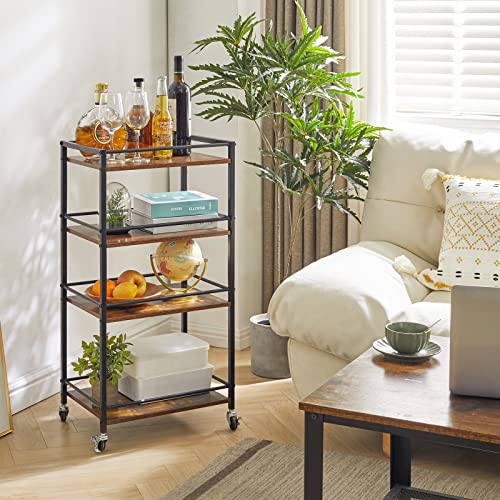 キッチンワゴン 隙間収納 収納カート キャスター付き 4段 北欧 ワゴン 省スペース 移動しやすい 組み立て簡単 収納ラック キッチンワゴン キッチン 洗面所 収納 ブラウン