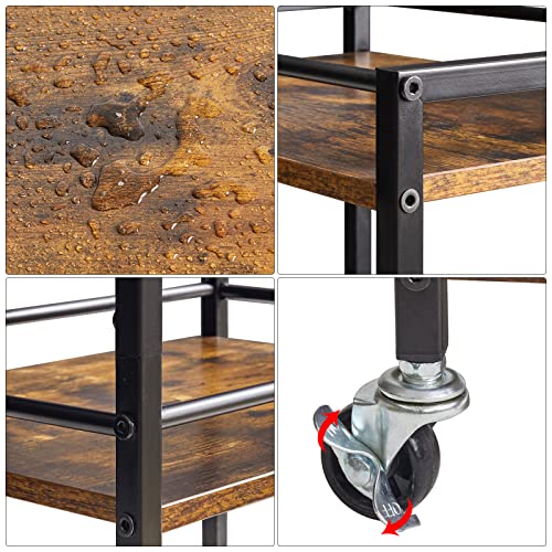 頑丈かつ耐久性がある:高品質な木材で作られた優れた収納カートで、食品や食器のストレージに最適で、清掃が簡単です。堅牢な金属構造に木材を加え、無味の塗料で防水性と防錆性を備え、構造がしっかりしており、使用時間が長いです。開放的なデザインで、物の積み込みが容易で、簡単に出し入れでき、換気にも良いです。コンパクトなサイズとローリングデザインで、家庭での優れた助手となっています。