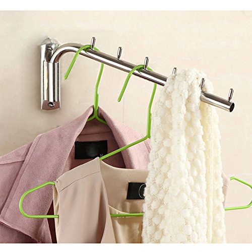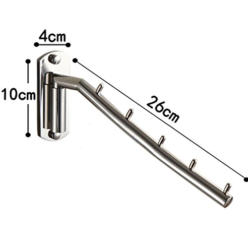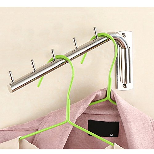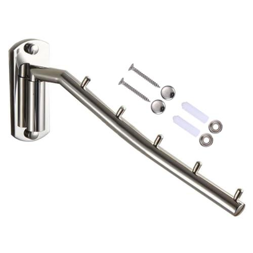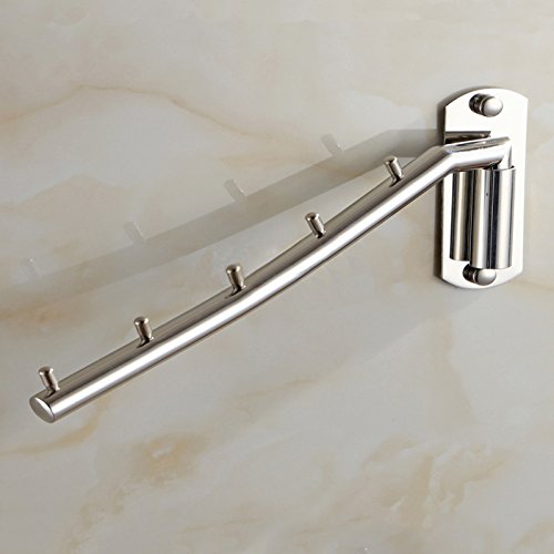 ウォールハンガー 壁掛けフック 回転可 服/帽子/鞄収納 ステンレス 玄関/浴室/キッチン/ベッドルーム (5連 B)