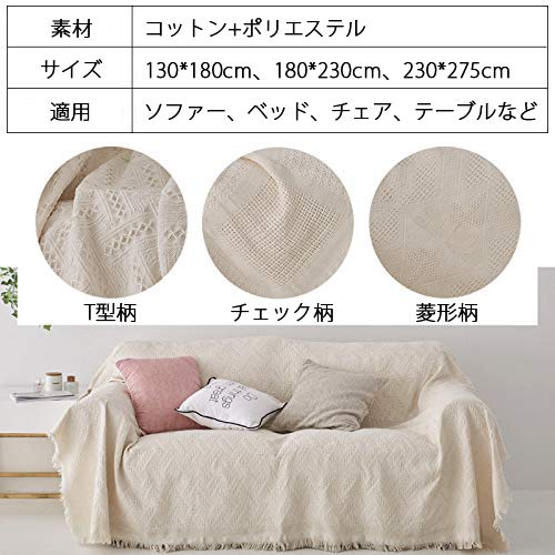 商品の説明 素材:[表地]コットン100% [裏地]ポリエステルサイズ:130*180cm、180*230cm、230*275cm模様:チェック、菱形、T型適用:ソファー、ベッド、チェア、ピアノ、テーブル、フロアなど。
