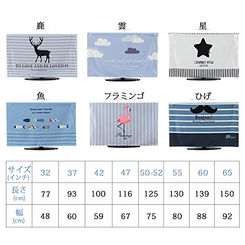テレビカバー 防塵カバー 液晶テレビカバー 可愛い 欧米風 55インチ (130X80cm 魚)