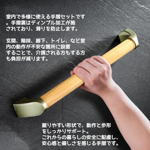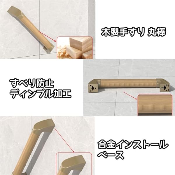 木製手すり てすり 壁掛け 安全 安心 屋内用 丸棒 ディンプル付 手すり棒 お風呂 浴槽 トイレ 手すり 介護用品 立ち上がり補助 高齢者 子供 妊婦 お風呂用品 入浴介助 転倒予防 滑り止めデザイン ネジ固定 取り付け簡単 (34cm)
