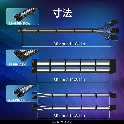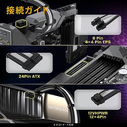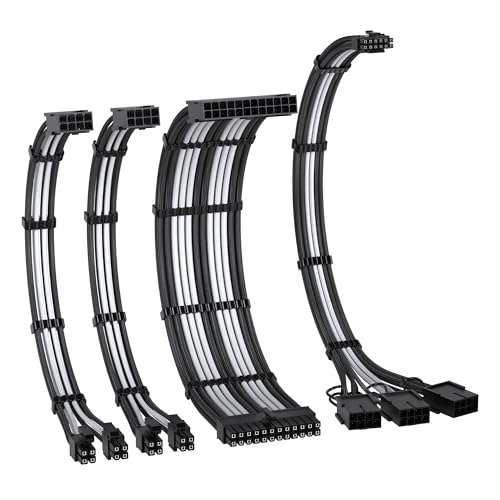 PCIe 5.0 12VHPWR 電源専用 PSUケーブル 延長スリーブケーブル 24ピン ATX/(4+4) ピン EPS/16 ピン (12+4) - 3X PCIE 8 ピンPCIE 電源ケーブル延長 GPU RTX4080/4070Ti 延長ケーブル16AWG - 黒白