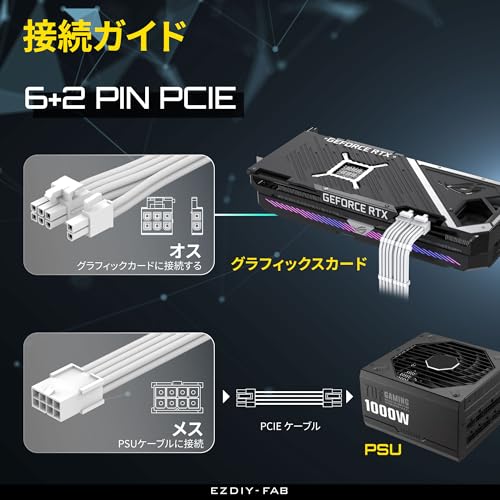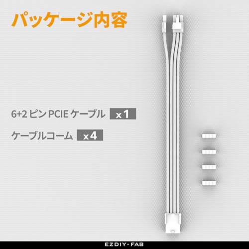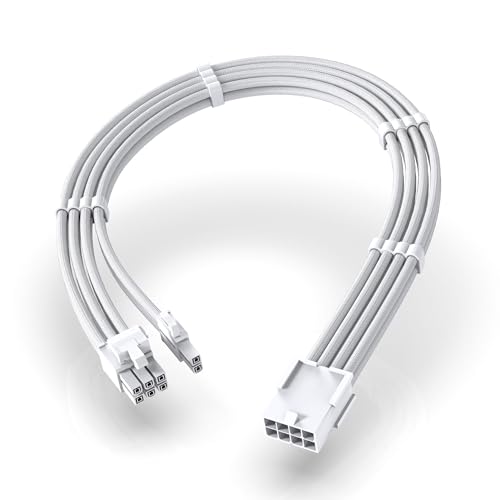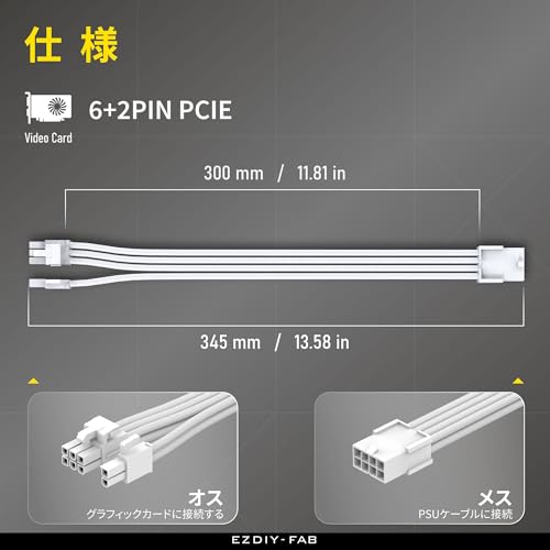 電源ケーブル PC用スリーブケーブル GPU/PCIE用PC電源 延長ケーブル PCIe 8ピンメス - PCIe 8ピン (6+2) オス 延長ケーブル グラフィックカードまたはPCIeデバイス用 延長スリーブケーブル 16AWG 11.8インチ (30 cm) - 全白