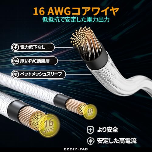 当社のプレミアムPETスリーブ付きケーブルエクステンションは、16 AWGのワイヤーと高密度の編み込みを使用しており、最適なケーブル配線のための柔軟性と剛性の完璧なバランスを提供します。