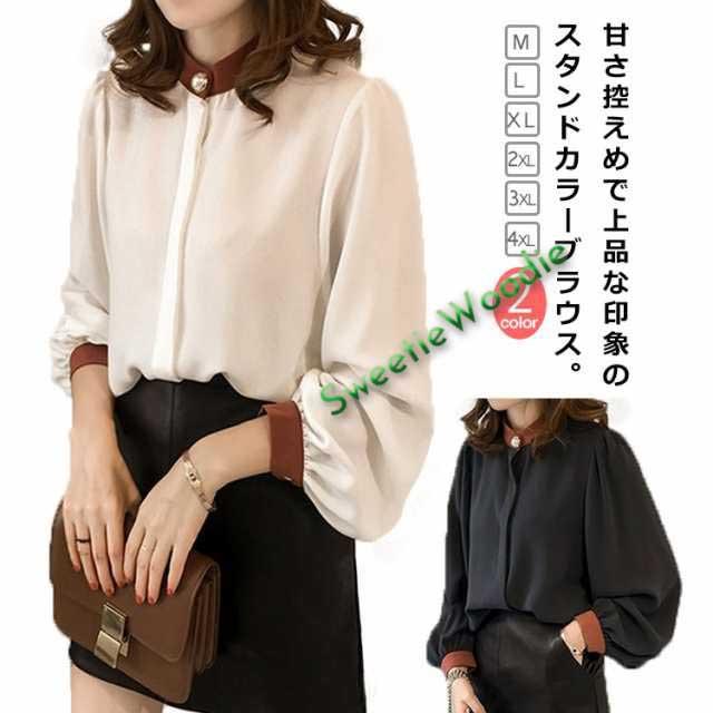 オフィス ブラウス シフォンシャツ 長袖ブラウス トップス 長袖 スーツ バイカラー スタンドカラー バルーン袖 大きいサイズ フォーマルブラウス 3XL レディース 切り替え M L XL 2XL インナー