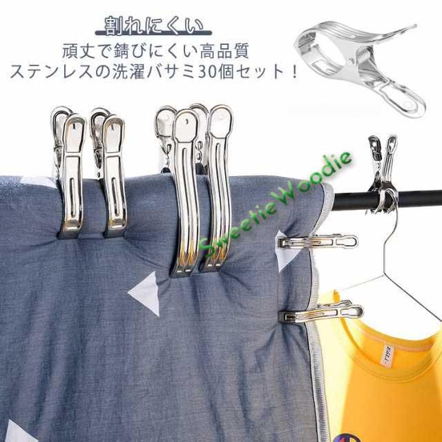 洗濯ばさみ ステンレス 30個セット 大口サイズ クリップ 割れにくい 金属 洗濯物 固定 防風 壊れにくい 強力 洗濯バサミ ワンタッチ 布団 竿ばさみ 物干し ピンチ 物干し竿 部屋干し 室内 錆びにくい 屋外 ベランダ 洗濯用品