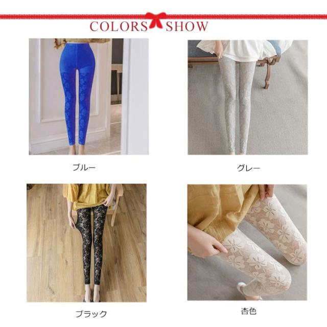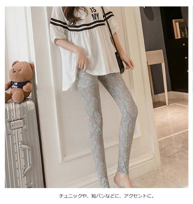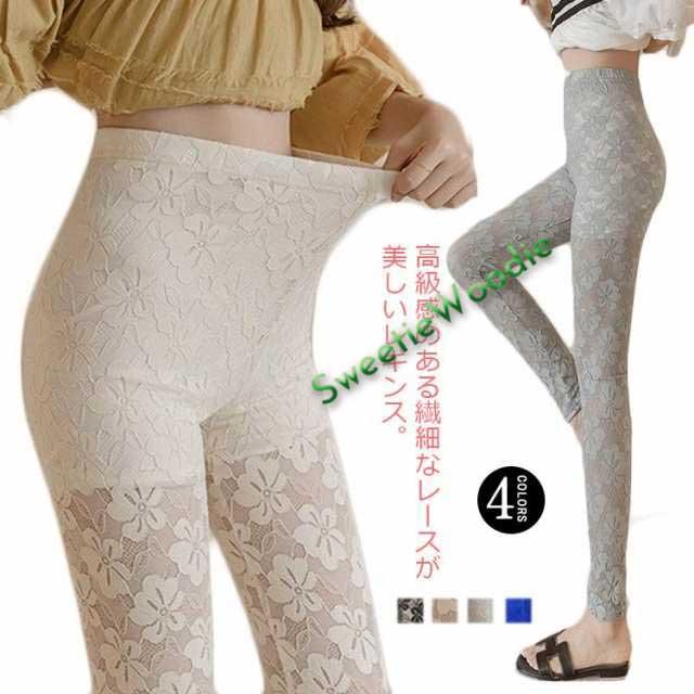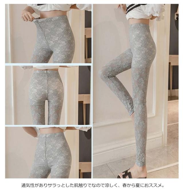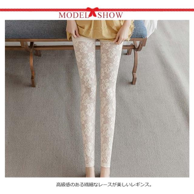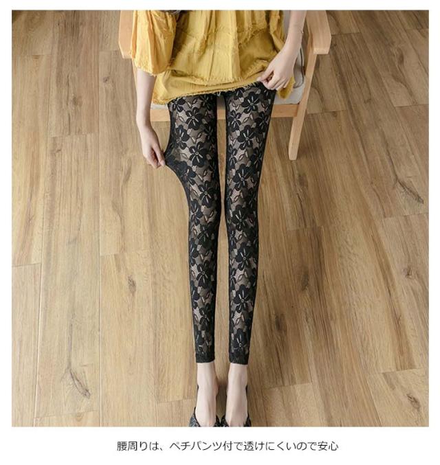 | 高級感のある繊細なレースが美しいレギンス。 控え目な光沢感が上品な雰囲気を醸し出す。 透け感のある花柄レースで、可愛くセクシーに。 通気性がありサラっとした肌触りでなので涼しく、春から夏におススメ。 ストレッチ性抜群で動きやすく、美脚効果もアップ。 チュニックや、短パンなどに、アクセントに。 腰周りは、ペチパンツ付で透けにくいので安心 | |