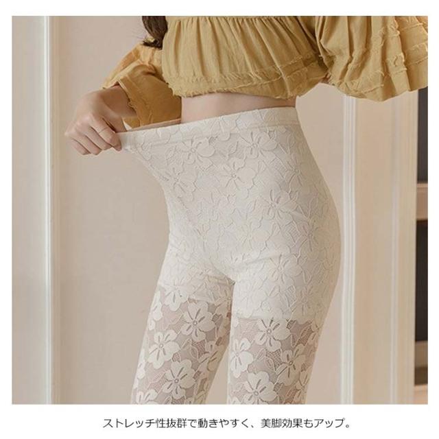 花柄ストレッチ総レース 9分丈 七分丈 レースレギンス ストレッチパンツ スパッツ シースルー 花柄レース きれいめ 綺麗め 大人 可愛い ナチュラル 夏用 フラワー 春夏 涼しい 送料無料