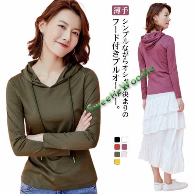 カットソー レディース 長袖 プルオーバー 夏服 薄手 パーカー フード付き 大人 パーカー シンプル トップス 春 夏 tシャツ 無地 パーカー 大きいサイズ おしゃれ 春夏 春服 サマーパーカー