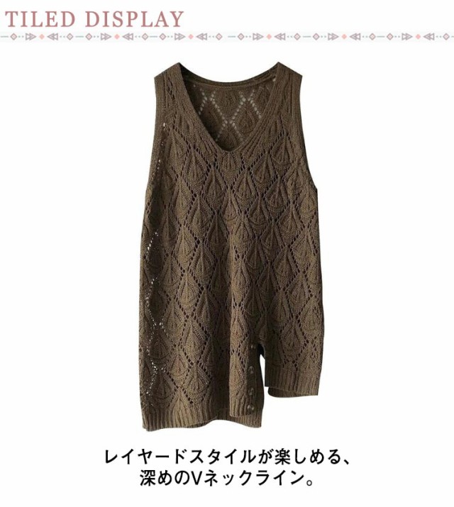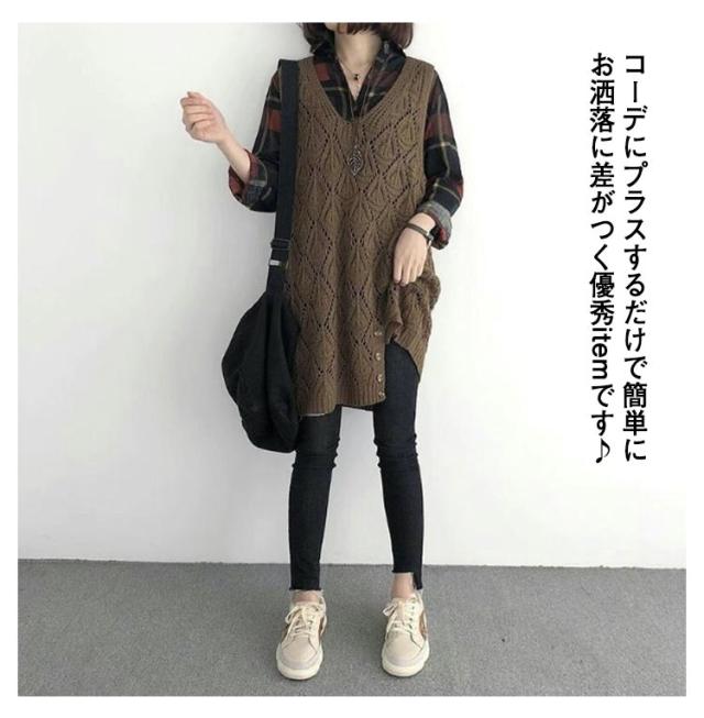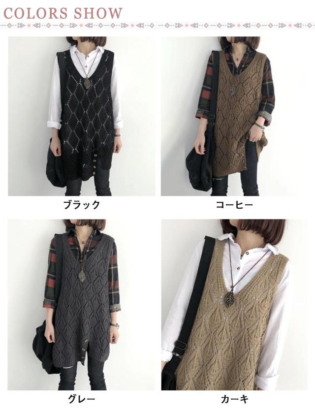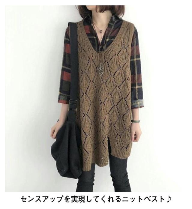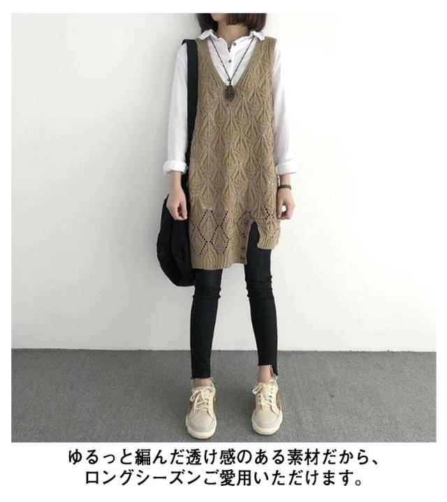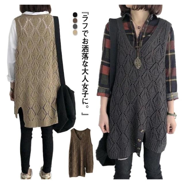 レース レディース 秋冬 大きいサイズ ロング きれいめ ジレ トップス 送料無料 冬 ノースリーブ ベスト レイヤード 重ね着 OL 無地 秋 袖なし トップス カジュアル 着回し 透かし編み 体型カバー 体型カバー 総柄 通勤 Vネック