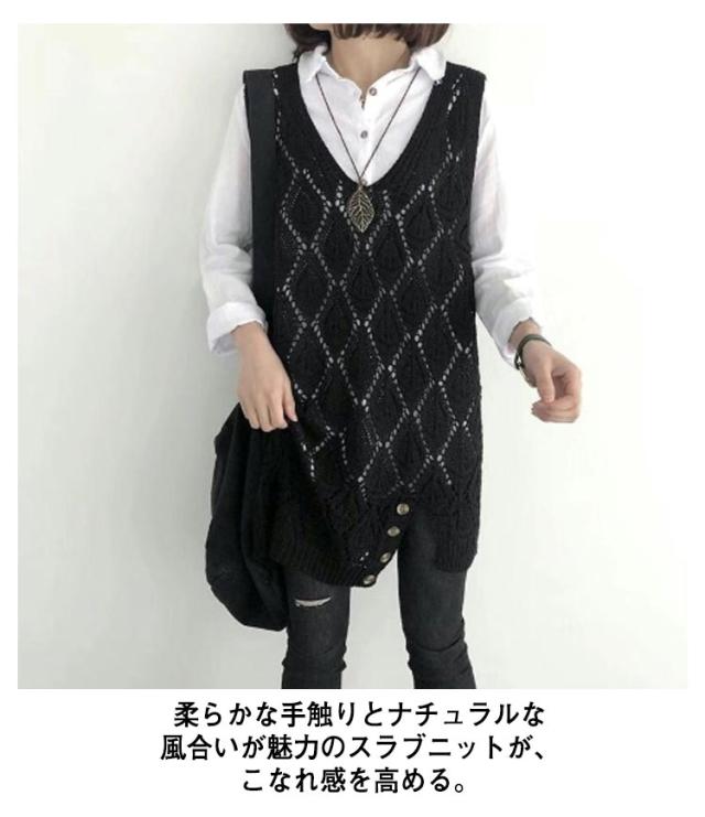 | 『ラフでお洒落な大人女子に。』 センスアップを実現してくれるニットベスト♪ 柔らかな手触りとナチュラルな風合いが魅力のスラブニットが、こなれ感を高める。 ゆるっと編んだ透け感のある素材だから、ロングシーズンご愛用いただけます。 レイヤードスタイルが楽しめる、深めのVネックライン。 コーデにプラスするだけで簡単にお洒落に差がつく優秀itemです♪ | |