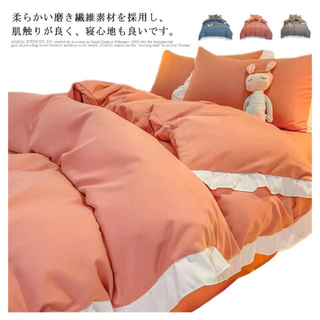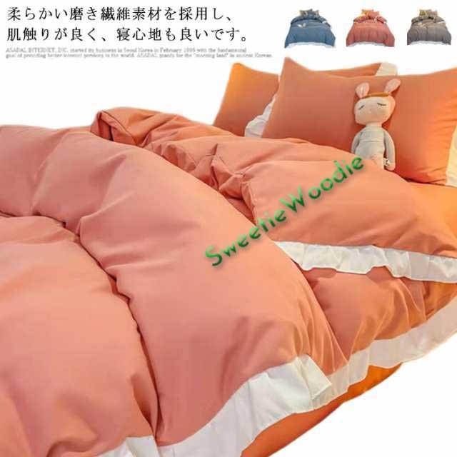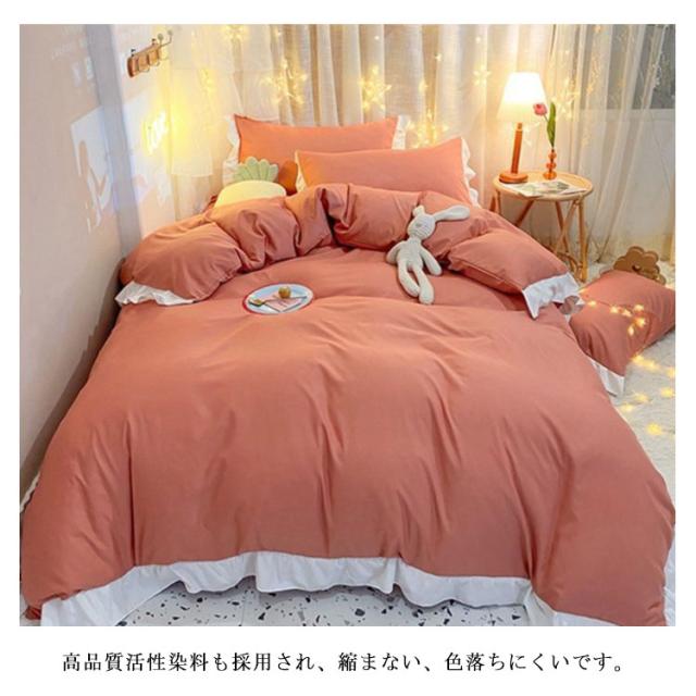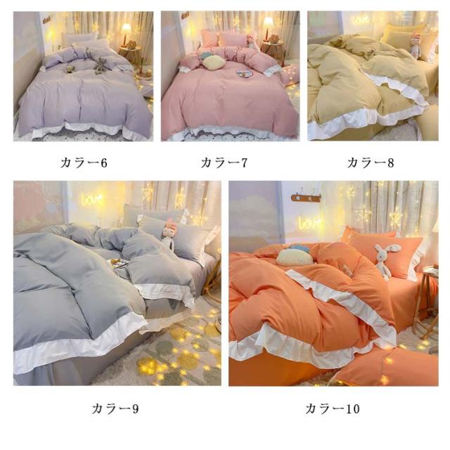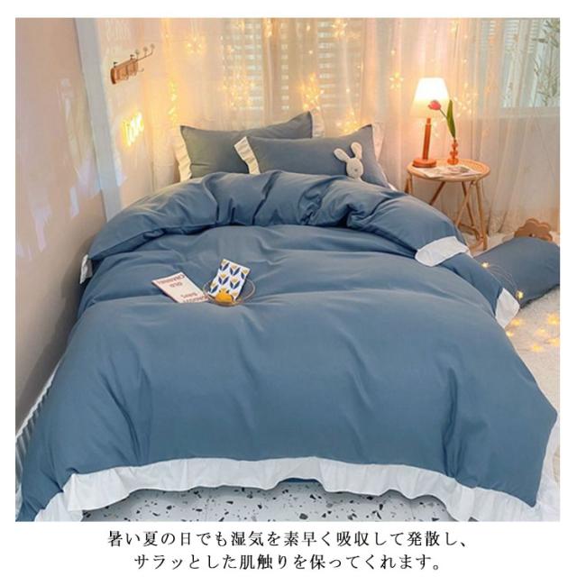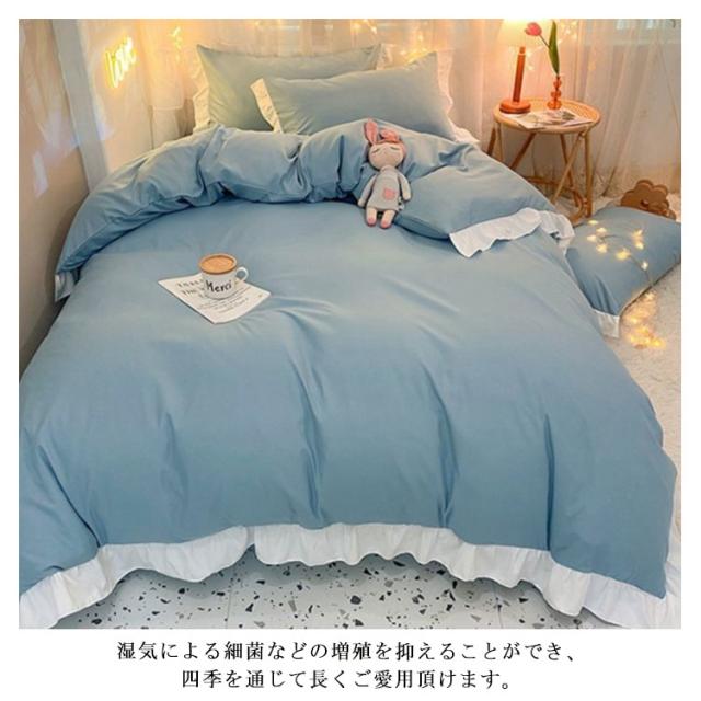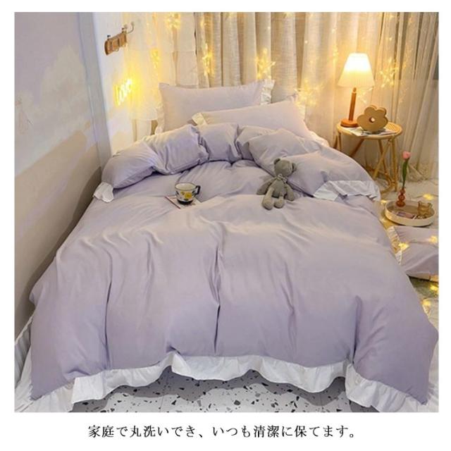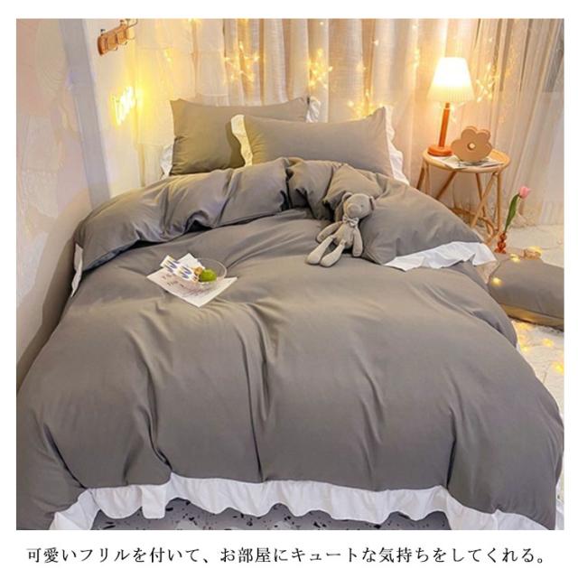 布団カバー 4点セット セミダブル ダブル 掛け布団カバー ベッドカバー 枕カバー2枚 寝具カバー フリル付き かわいい モノトーン おしゃれ 北欧 丸洗いOK 無地 抗菌 防ダニ 洋式