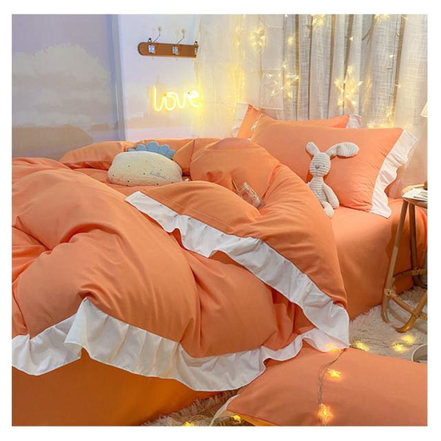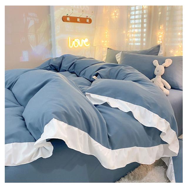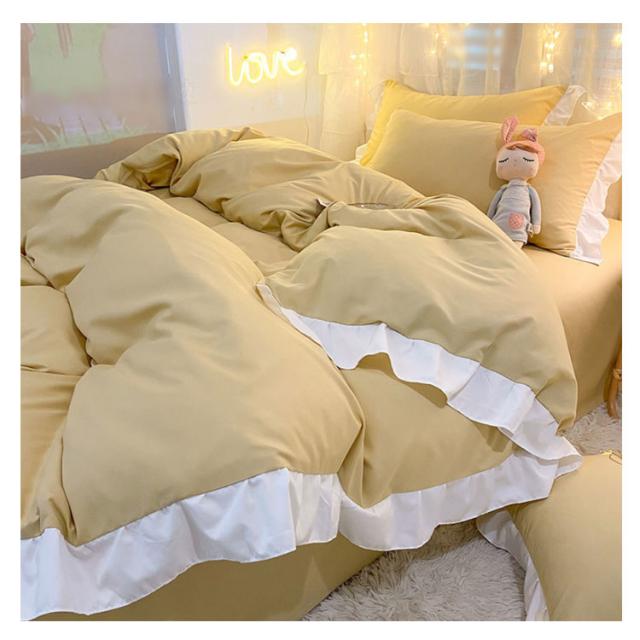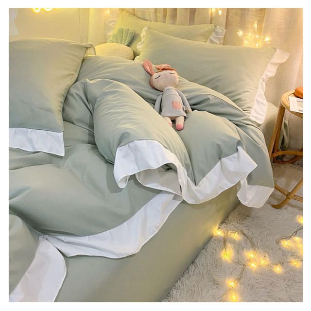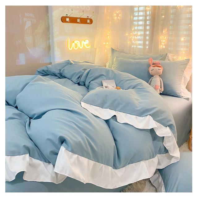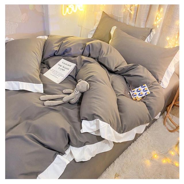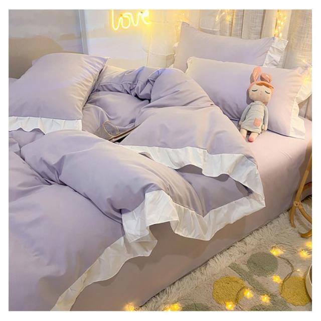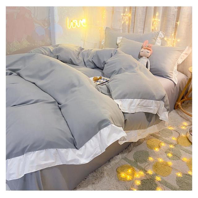 布団カバー 4点セット セミダブル ダブル 掛け布団カバー ベッドカバー 枕カバー2枚 寝具カバー フリル付き かわいい モノトーン おしゃれ 北欧 丸洗いOK 無地 抗菌 防ダニ 洋式