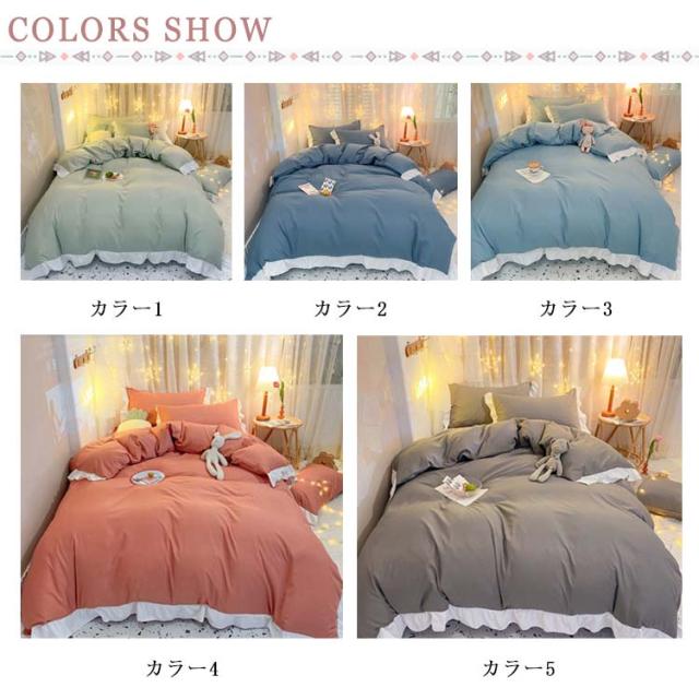 | 柔らかい磨き繊維素材を採用し、肌触りが良く、寝心地も良いです。 暑い夏の日でも湿気を素早く吸収して発散し、サラッとした肌触りを保ってくれます。 湿気による細菌などの増殖を抑えることができ、四季を通じて長くご愛用頂けます。 高品質活性染料も採用され、縮まない、色落ちにくいです。 可愛いフリルを付いて、お部屋にキュートな気持ちをしてくれる。 家庭で丸洗いでき、いつも清潔に保てます。 | |