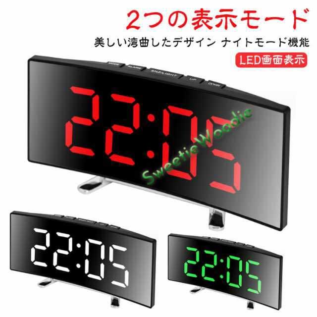 デジタル時計 目覚まし時計 ナイトモード 卓上 置き時計 卓上時計 LEDアラーム時計 デジタル表示 LED表示 USB給電 ミラー時計 スヌーズ機能 曲面パネル 曲面スクリーン 目覚まし時計 アラーム機能 日付表示 温度表示