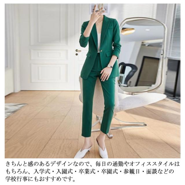 | 【ファションデザイン】大人のトレントスタイル、気になる体型を綺麗にカバー。九分丈のテーパードパンツが敢えて美脚効果バッグン。 【肌触りの素材】フォーマルスーツのサラサラ生地が気持ちいい、着心地が抜群です。快適な素材は春夏で活躍する大人気なパンツセットです。気持ちが良い、着心地が抜群です。 【上品・高級感】セットアップスーツレディースは大人っぽい綺麗で女性らしいエレガント・女子力の魅力をアピールします。楽ちん綺麗なシルエットで、着?やすく働きやすいのが嬉しいポイントです。 【様々なシーンで活躍】きちんと感のあるデザインなので、毎日の通勤やオフィススタイルはもちろん、入学式・入園式・卒業式・卒園式・参観日・面談などの学校行事にもおすすめです。 | |