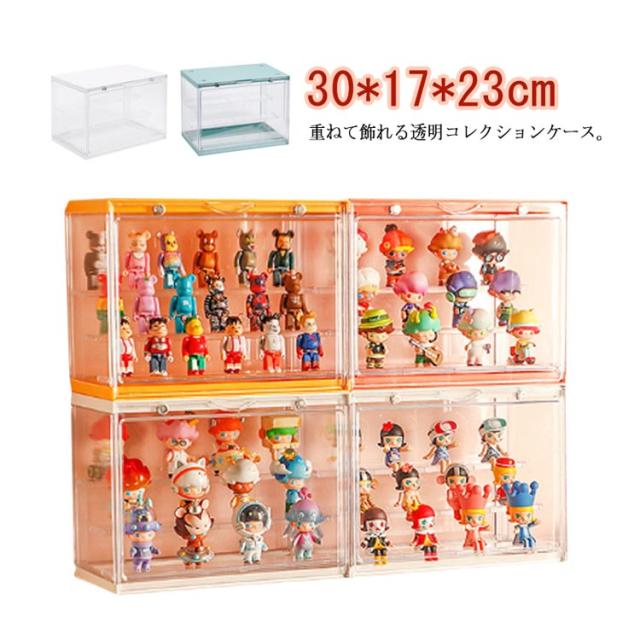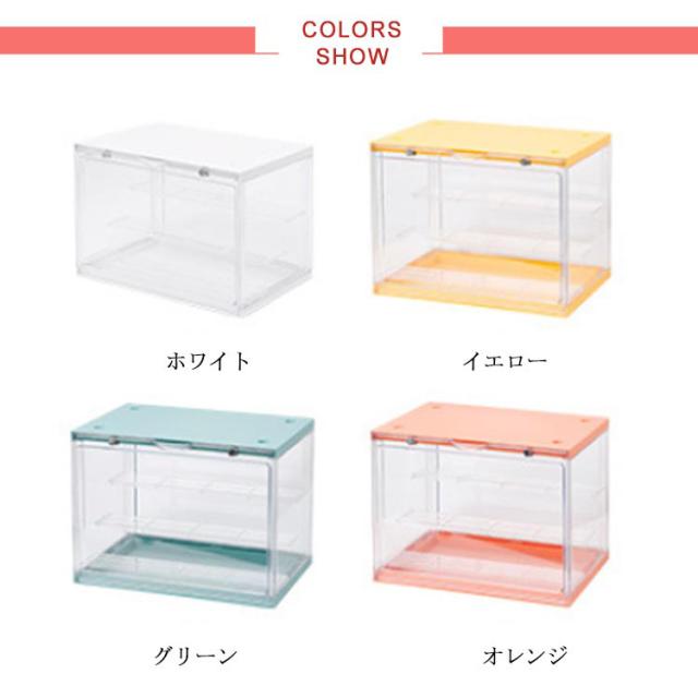 収納 小型フィギュア ミニカー 収納 透明ケース コレクションケース アクリルケース フィギュアケース クリア アクリルボックス 重ねて飾れる オレンジ 卓上小型 透明コレクションケース 扉付き ディスプレイケース ホワイト グリーン アクリル板