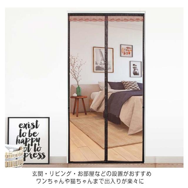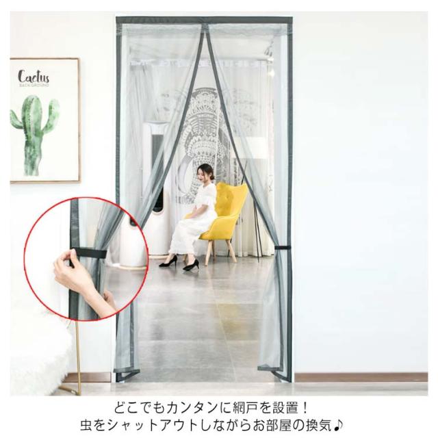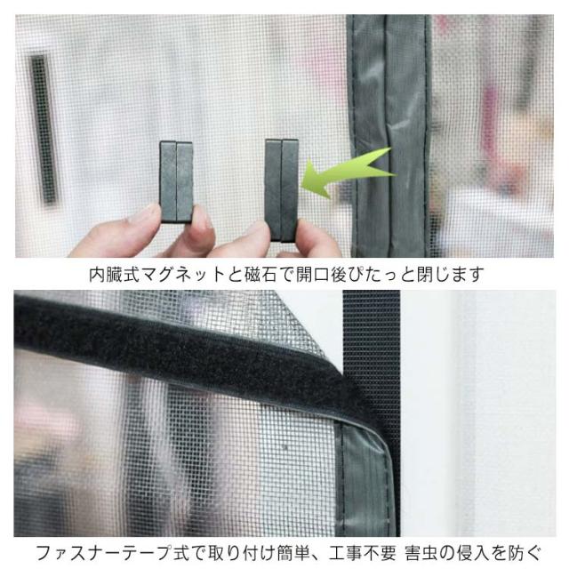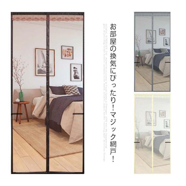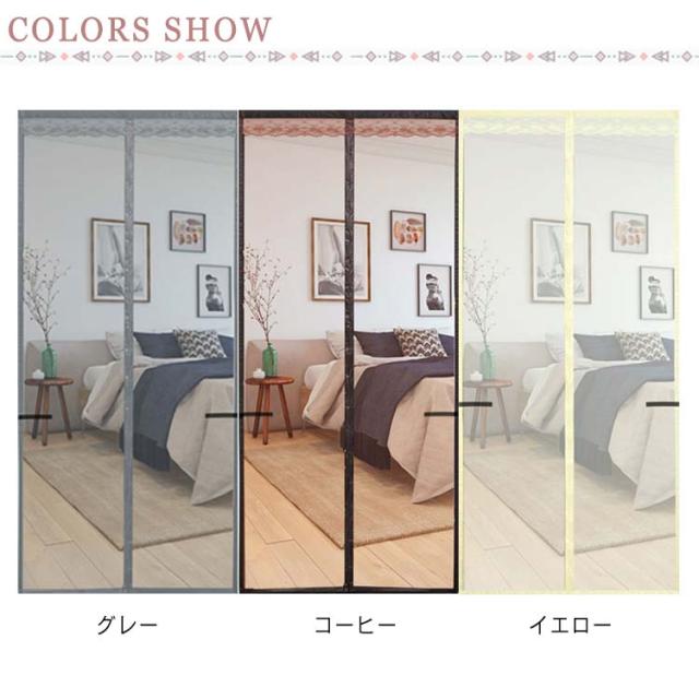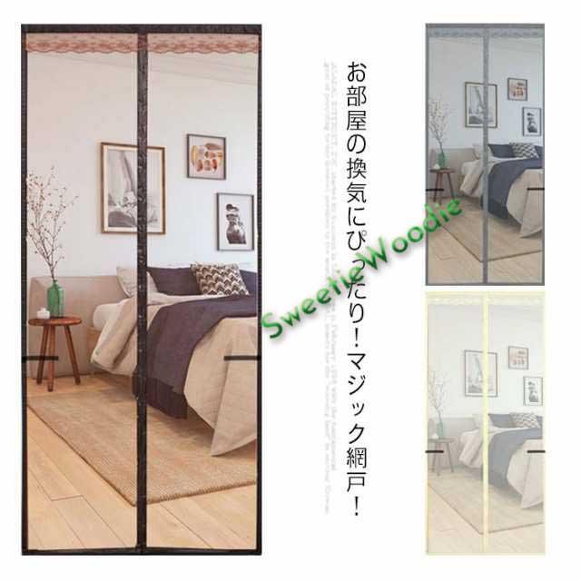 全3色! 取り付け簡単 網戸カーテン 送料無料 蚊帳カーテン マグネット式 虫よけ 換気対策 工事不要 幅3サイズ80/90/100cm 高さ210cm 網戸 快適 ベランダ ドア 猫 犬 ペット防止 蚊 省エネ効果 玄関 寝室