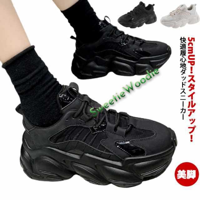 厚底スニーカー ダッド スニーカー レディース 厚底 スニーカー カジュアルシューズ ウォーキングシューズ 靴 シューズ 黒 白 ヒール5cm 身長アップ 美脚 オシャレ 歩きやすい 疲れにくい 通気 滑り止め 22.5cm-25.0cm 足長 脚長