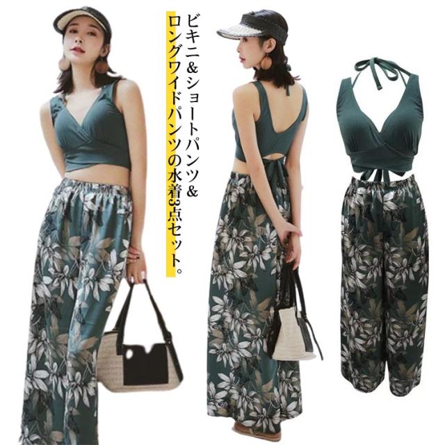 お尻 ビキニ ショートパンツ 40代 3点セット 水着 タンキニ バスト ワイドパンツ 体型カバー レディース ロングパンツ 大人 太もも カバーアップ 女性 露出控えめ ビーチ 盛れる 20代 30代 ママ水着 海 露出控えめ リゾート 海水浴 Vネック
