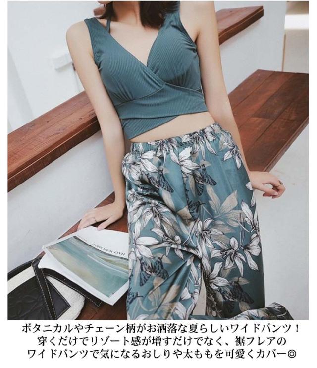 | ビキニ&ショートパンツ&ロングワイドパンツの水着3点セット。 オシャレで年齢問わず着られるデザインの露出控えめビキニスタイル。 ロング丈のワイドパンツは下半身をしっかりカバーできリゾート感のある雰囲気に仕上げてくれる一枚です。 ボタニカルやチェーン柄がお洒落な夏らしいワイドパンツ!穿くだけでリゾート感が増すだけでなく、裾フレアのワイドパンツで気になるおしりや太ももを可愛くカバー◎ ブラとショーツはリブ生地&ワンカラーで大人っぽくまとめたこなれ感たっぷりなビキニスタイル。カシュクール風ブラとハイウエストショーツで露出を抑えつつヘルシーに決まる!また、ストレッチの高いリブ生地で締め付け感無くリラクシーに穿きこなせる。 ヘルシーさとおしゃれさを兼ね備えた普段着感覚でアクティブなマリンスタイルが叶うタンキニセットです。水陸両用で様々シーンで大活躍するセットです。 | |